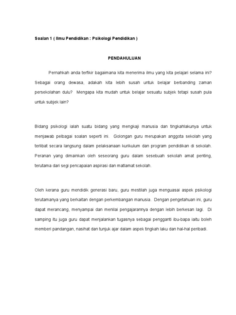 Bagi seorang guru memahami psikologi pendidikan adalah suatu keharusan karena berkaitan langsung dengan proses perkembangan jiwa peserta didiknya. Penolong Pegawai Perancang Bandar dan Desa Gred JA29 Jabatan Perancang Bandar dan Desa Peperiksaan Online Memasuki Perkhidmatan Awam PSEE Ujian Psikometrik Tarikh Peperiksaan. Pengalaman memang guru yang paling baik.
