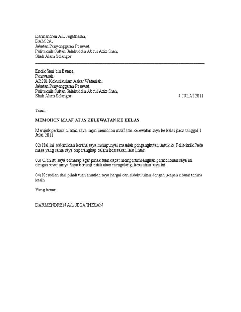 Surat Minta Maaf Surat Bahasa Melayu Bahasa